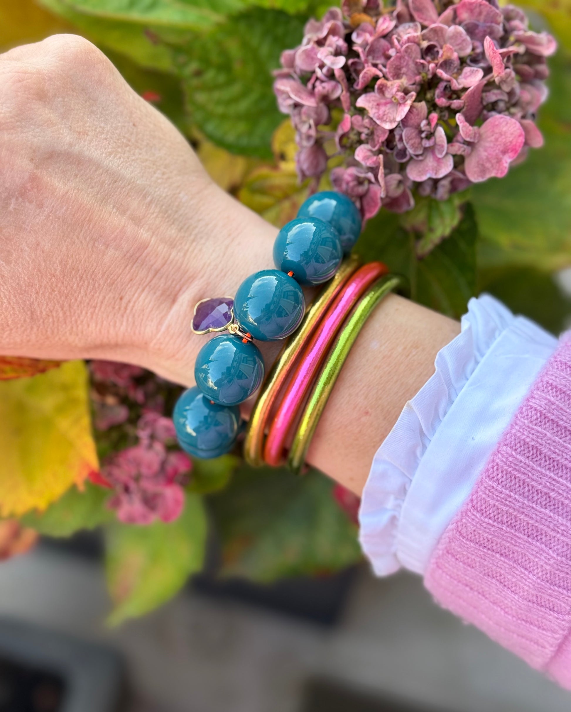 Ob einzeln getragen, wild gemixt oder als modischer Kontrast- die Armbänder sind echte Gute-Laune-Booster fürs Handgelenk. Einfach anziehen, strahlen und Spaß haben!
