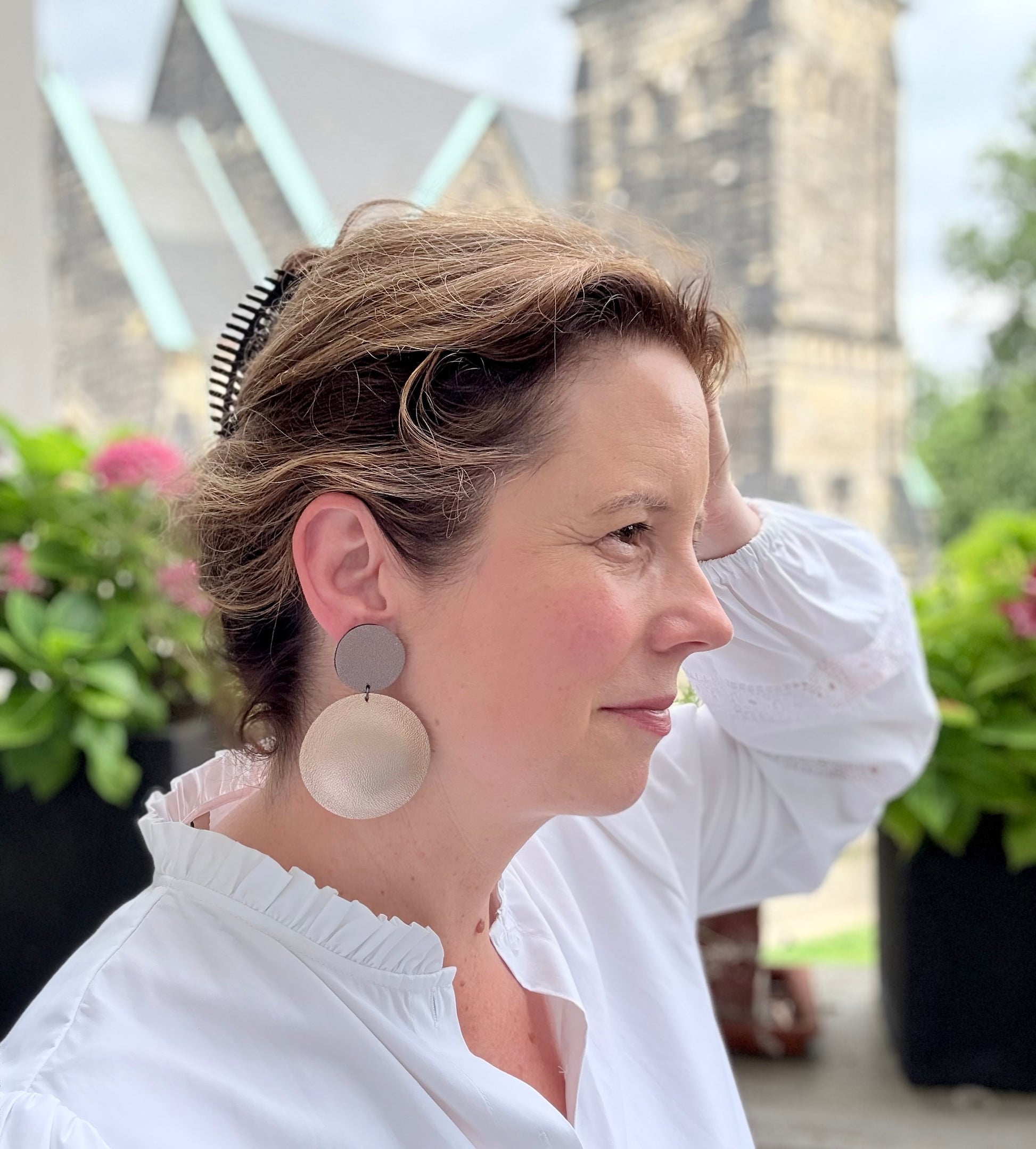Die Ohrringe sind ganz leicht und können wunderbar den ganzen Tag getragen werden, durch den mittig platzierten Stecker (925er Sterling Silber) sitzen sie auch perfekt am Ohr.