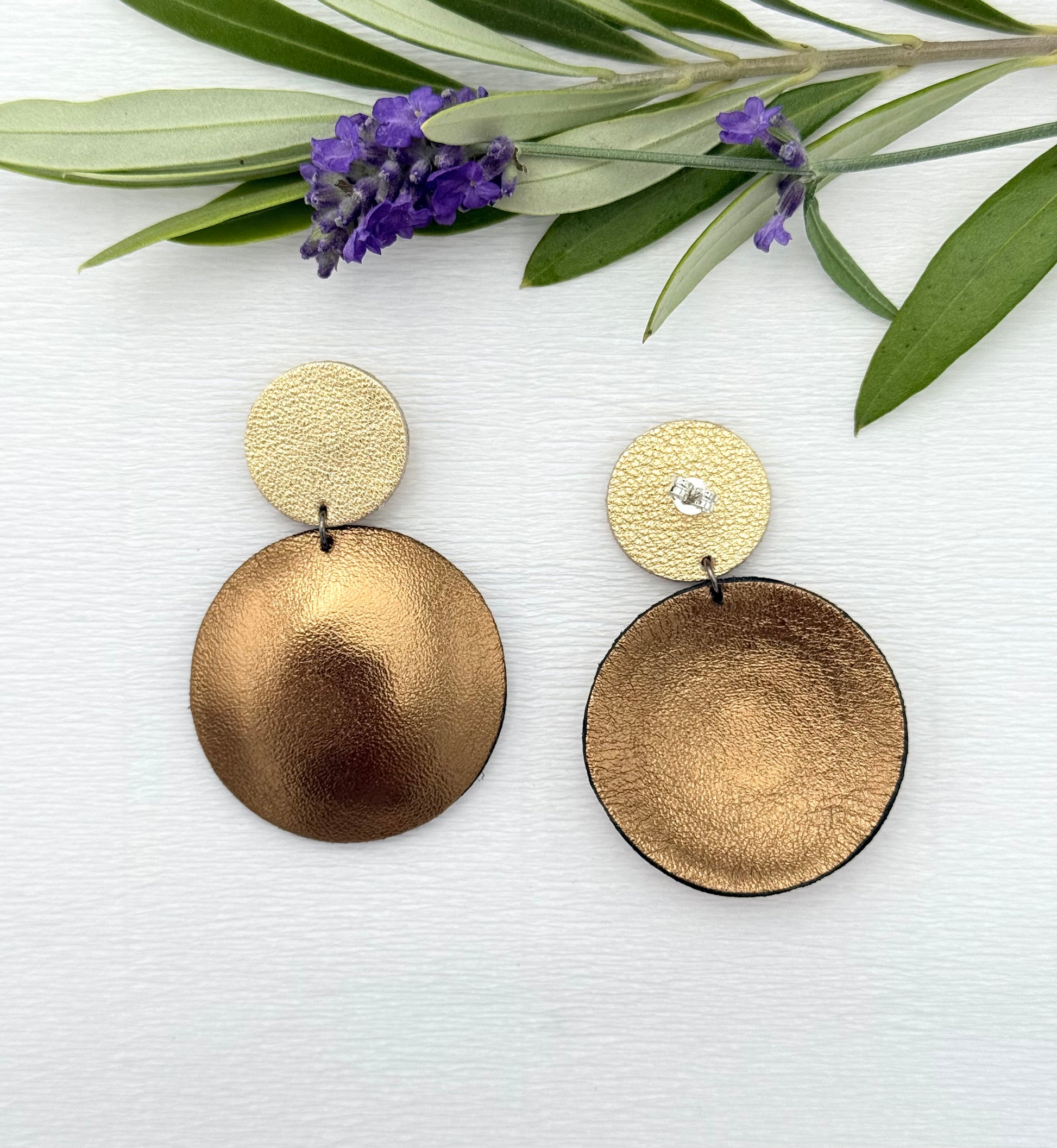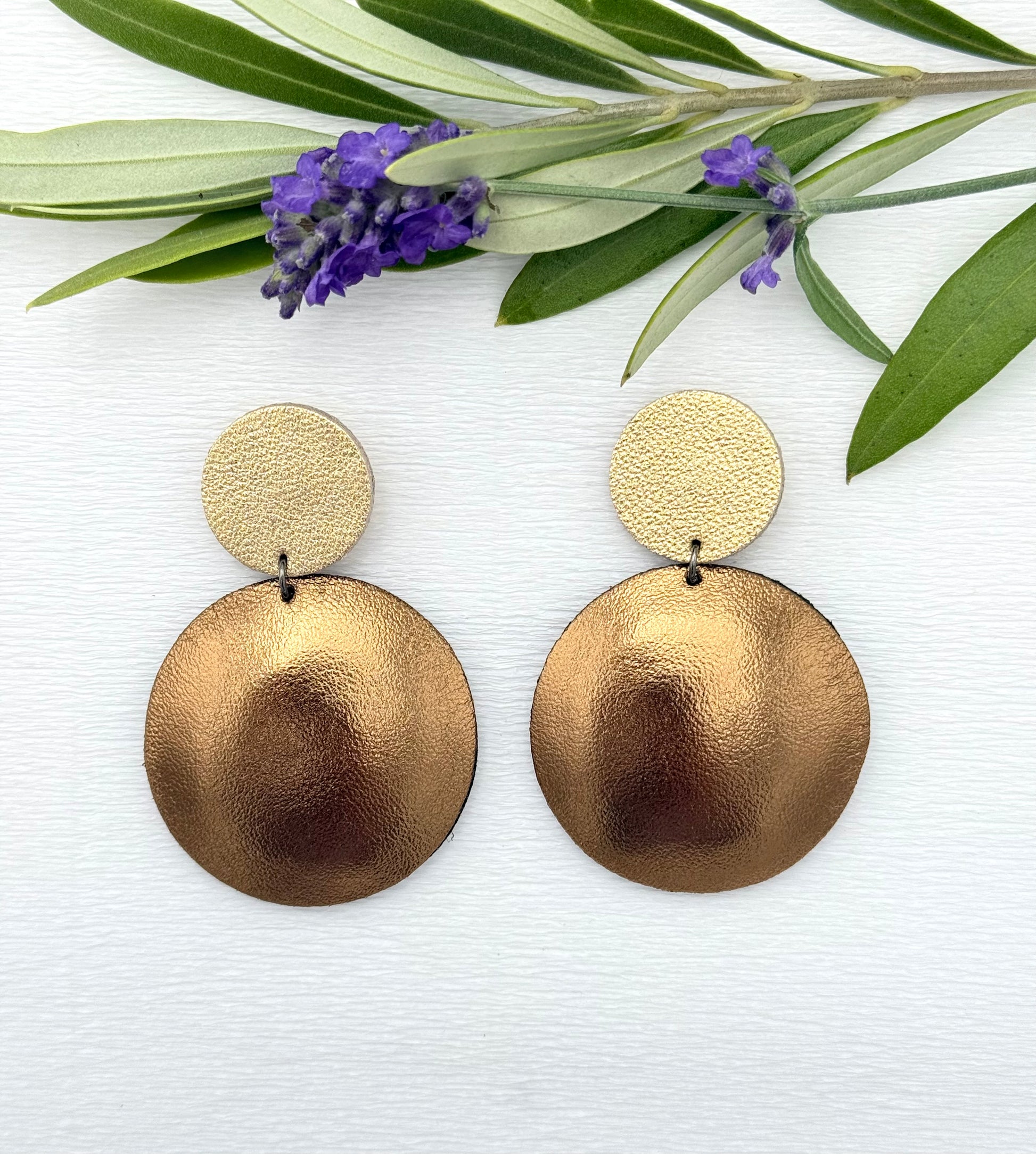 In liebevoller Handarbeit werden die hochwertigen goldenen Ohrringe in Griechenland aus feinstem Leder gefertigt. Die gold leuchtende Oberfläche des weichen Leders sieht elegant und exquisit aus. Mit diesen außergewöhnlichen Ohrringen setzt du echte Wow-Akzente bei deinem Outfit. Unsere neuen Lieblinge 🌟