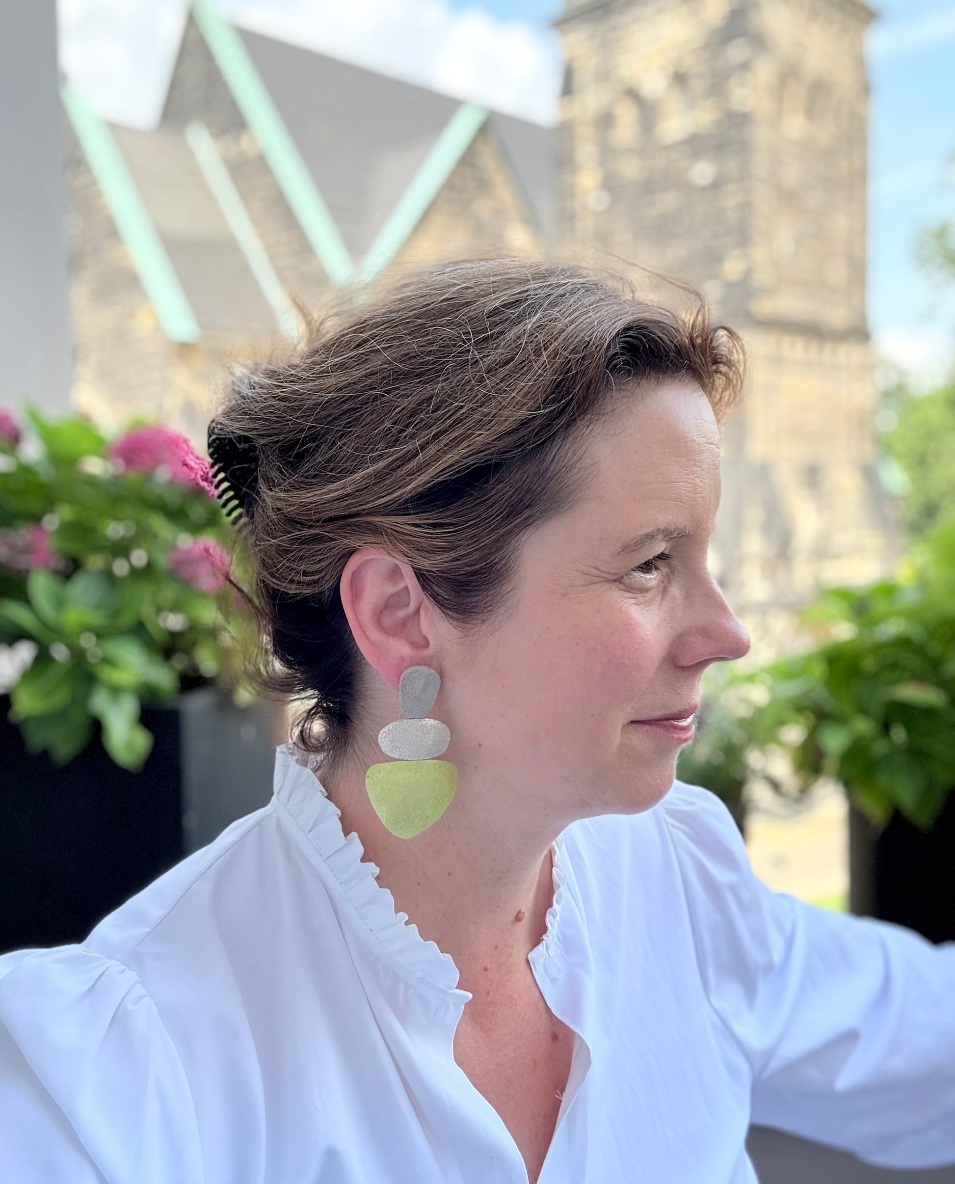 Die Ohrringe sind ganz leicht und können problemlos den ganzen Tag getragen werden, durch den mittig platzierten Stecker (925er Sterling Silber) sitzen sie auch perfekt am Ohr.