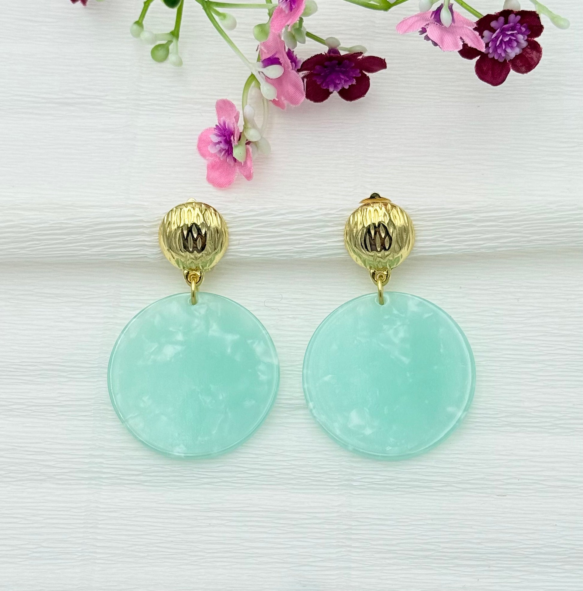 Diese Clips-Ohrringe sind bunte Hingucker. Der vergoldete Clip sitzt sicher am Ohrläppchen, der runde Anhänger in einem frischen Türkiston bringt Farbe ans Ohr.