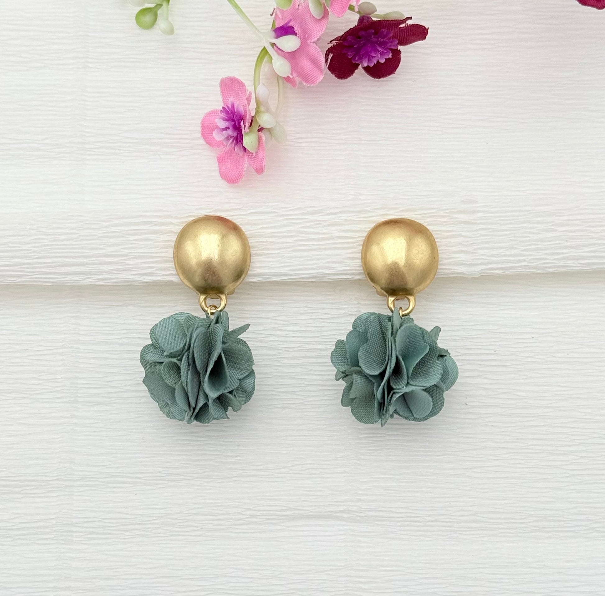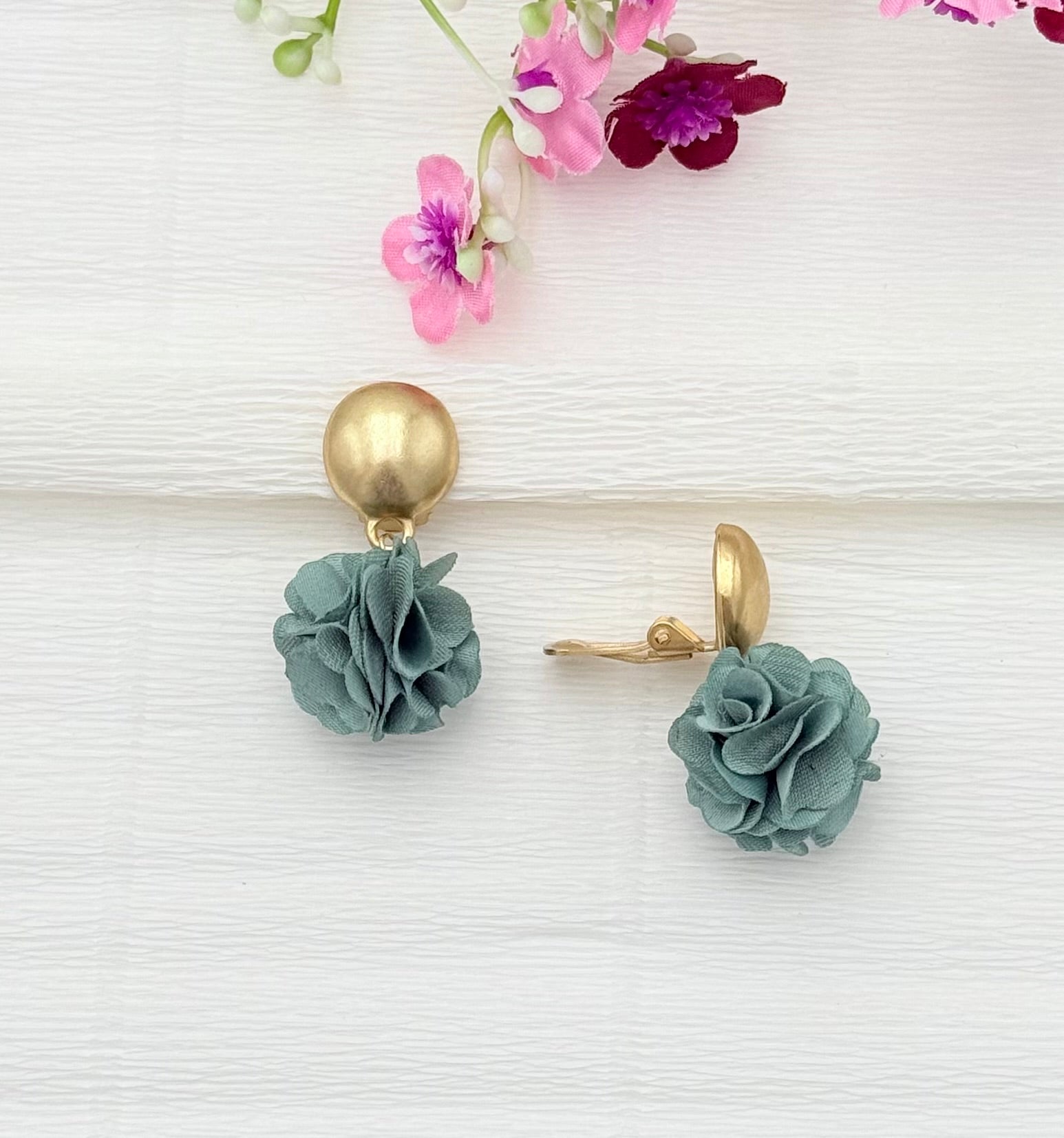 Diese Clips-Ohrringe sind kleine bunte Hingucker. Der goldfarbene Clip sitzt sicher am Ohrläppchen, der salbeifarbene Pompon-Anhänger aus Stoff bringt fröhliche Leichtigkeit in dein Outfit.