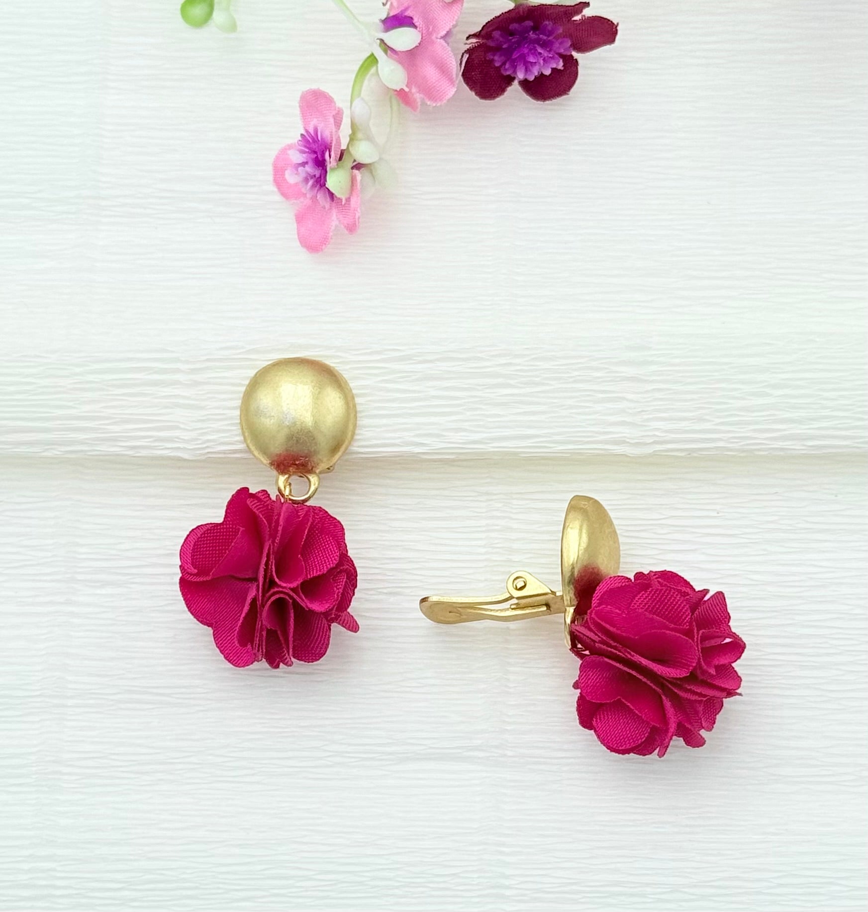 Diese Clips-Ohrringe sind kleine bunte Hingucker. Der goldfarbene Clip sitzt sicher am Ohrläppchen, der pinke Pompon-Anhänger aus Stoff bringt fröhliche Leichtigkeit in dein Outfit.