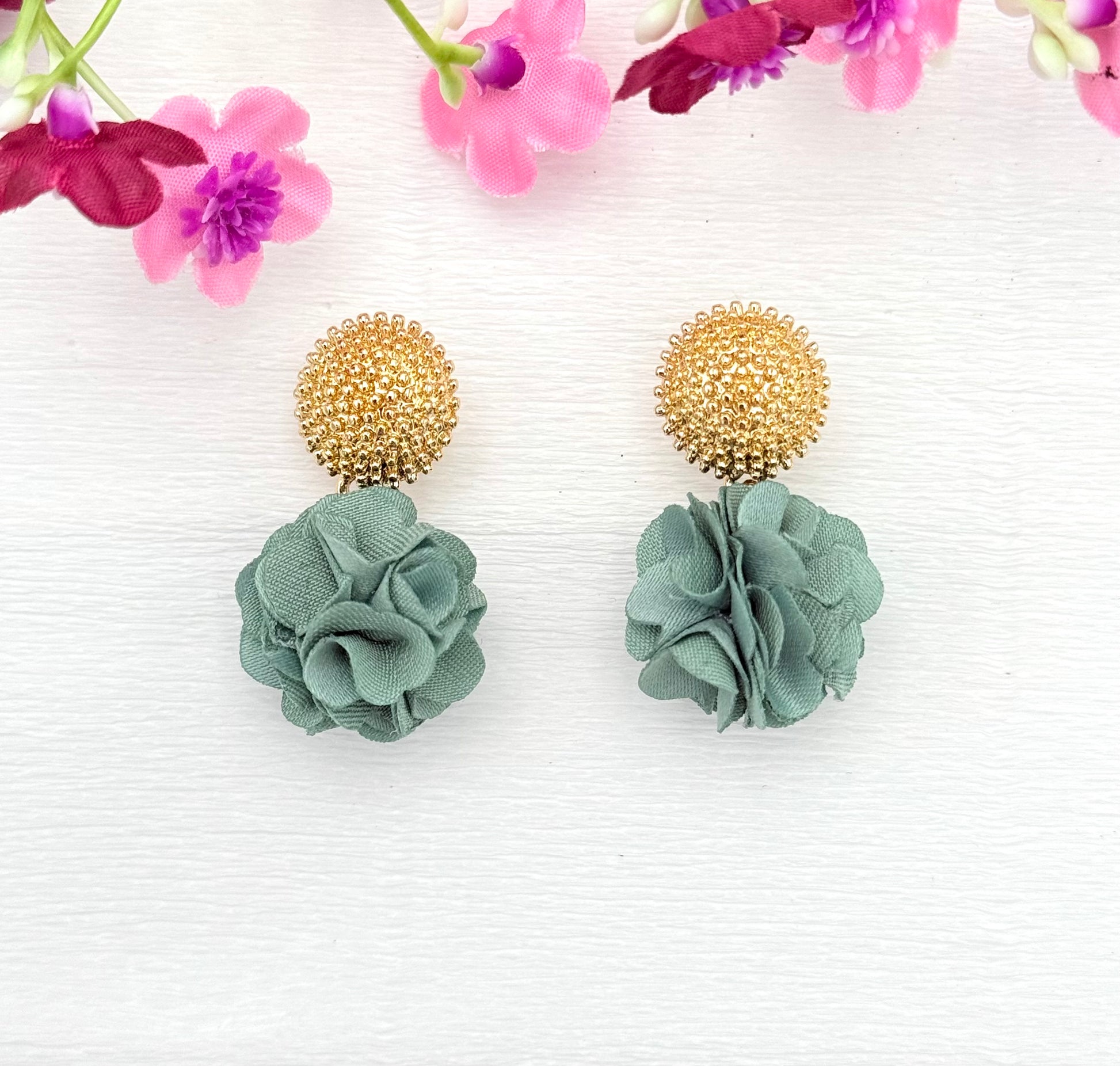 Dolly Ohrringe – Schilfgrüne Pompon-Ohrringe mit goldfarbenem Stecker