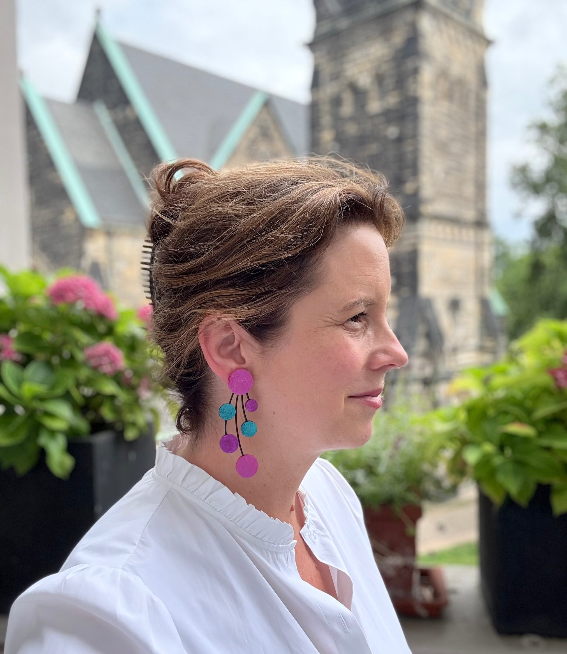 Konfetti fürs Ohr: Echte Hingucker aus leichtem Leder in schimmernden Pink- und Türkistönen.