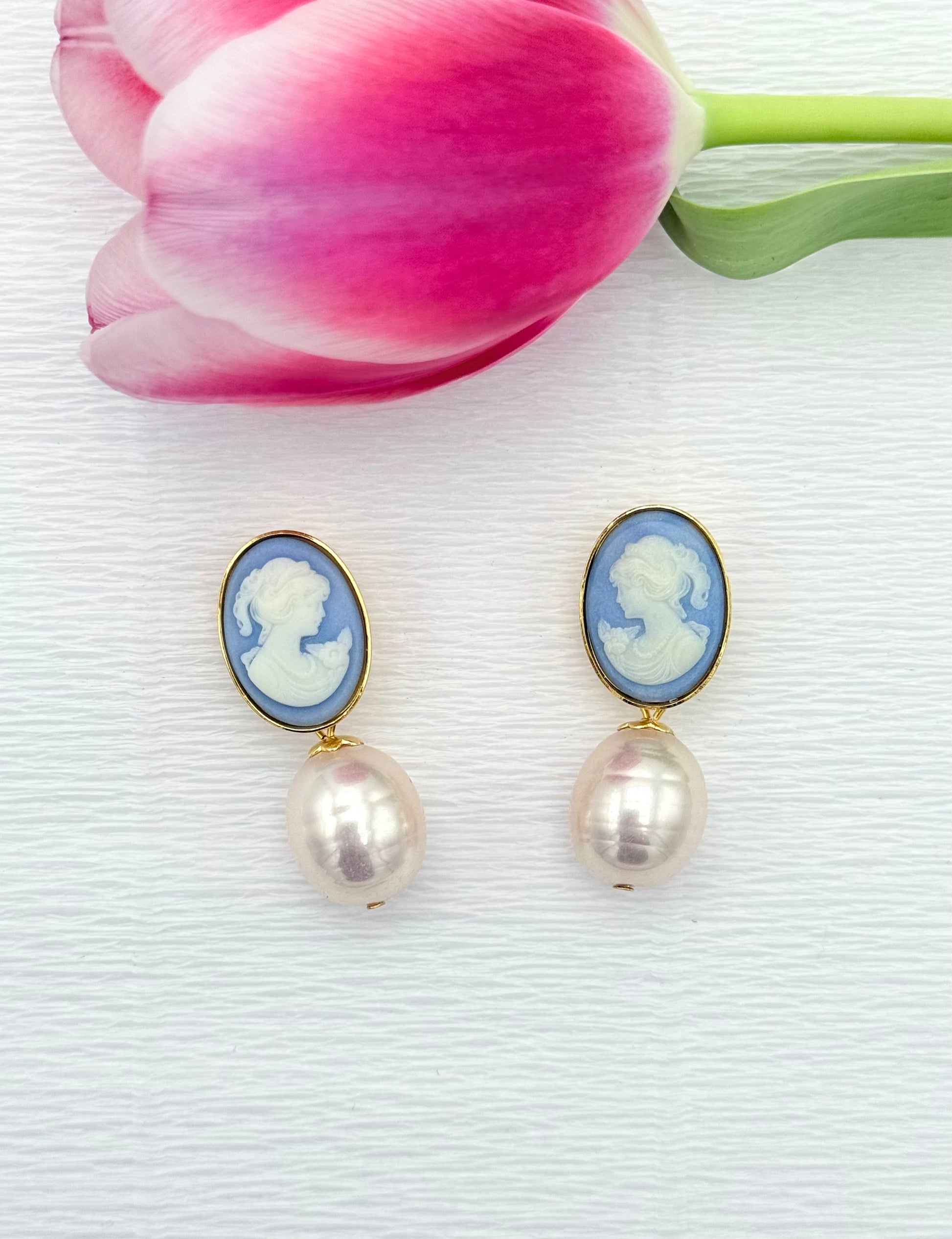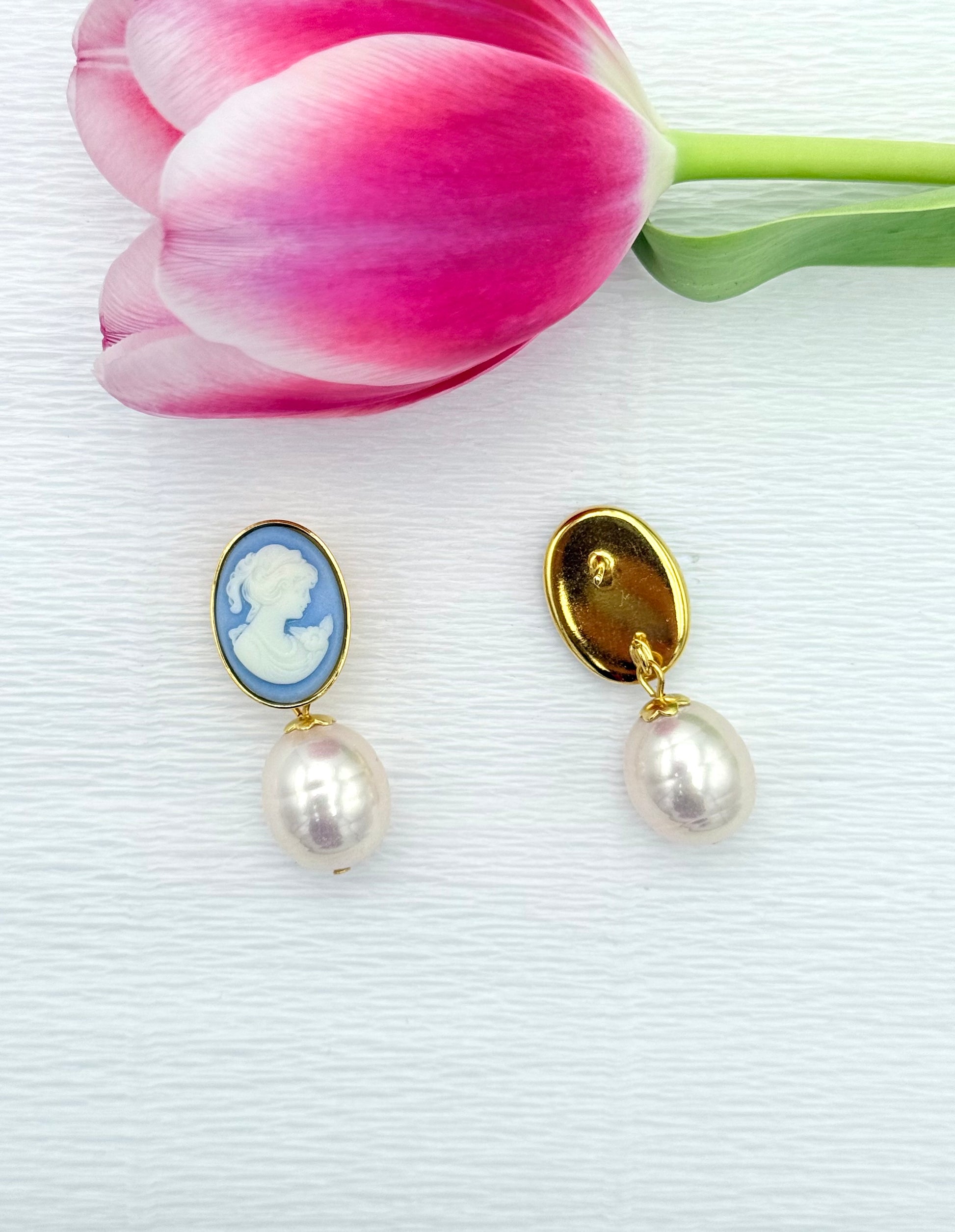 Elegante Mallorcaperlen-Ohrringe mit Kamee-Steckern