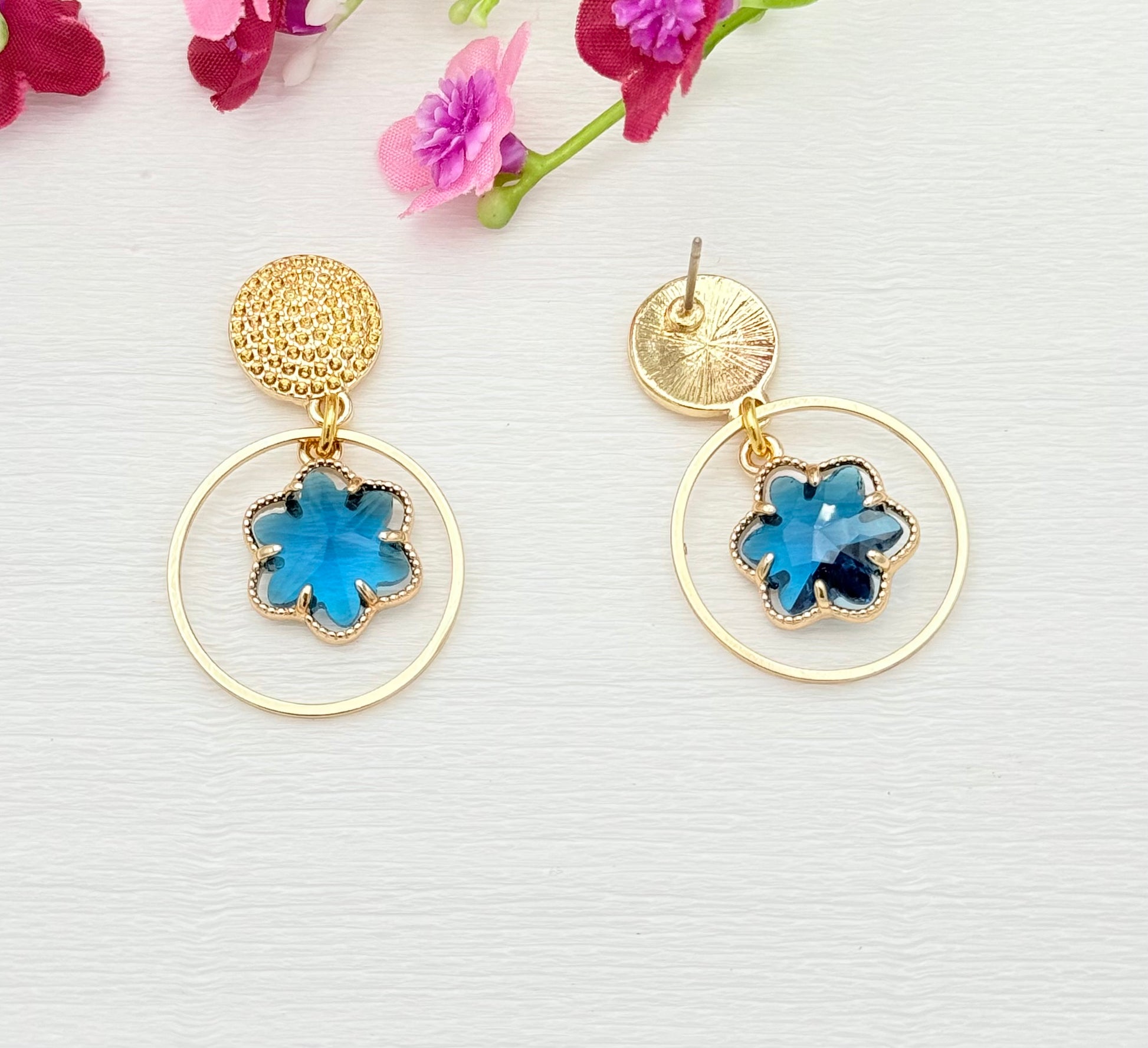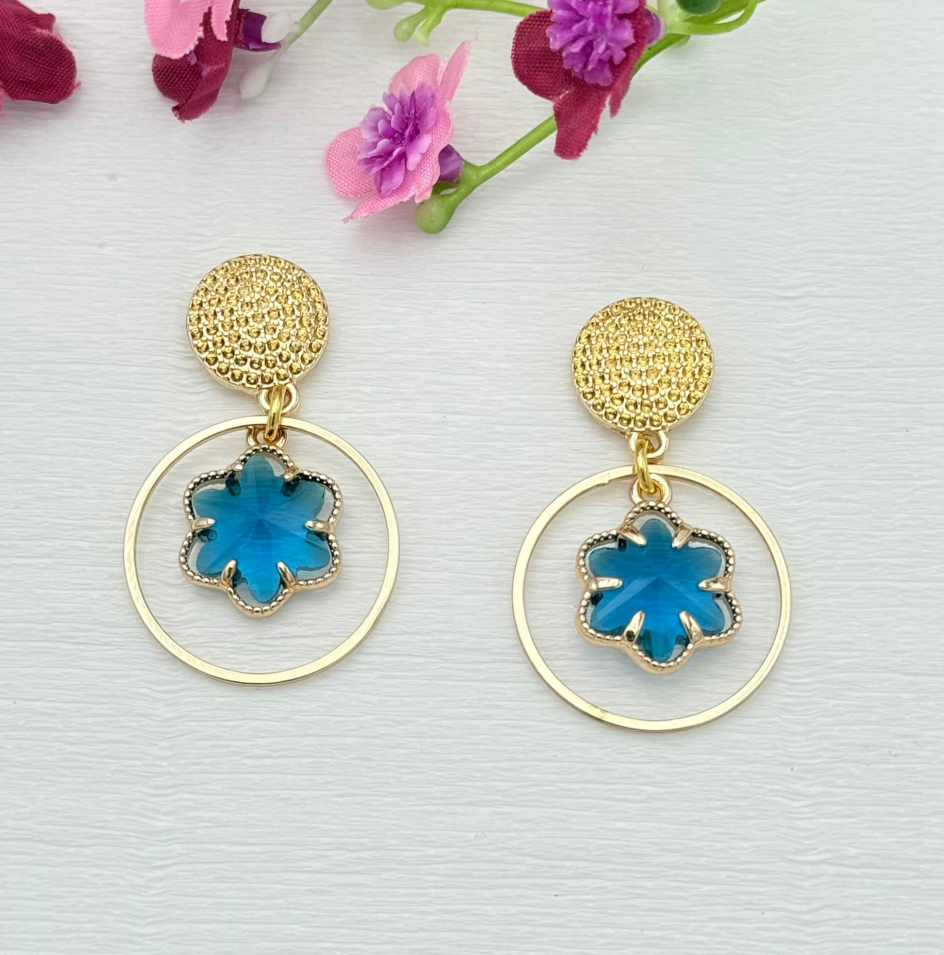 Diese zarten Ohrringe sind unsere neue Lieblinge! Sie verleihen deinem Outfit Eleganz und Leichtigkeit und bringen Farbe und gute Laune in dein Outfit. Der Kleeblatt-Anhänger aus geschliffenem Glaskristall hängt locker in einem goldfarbenem Ring - das verleiht den schönen Ohrringen seine besondere Leichtigkeit. Die Stecker der goldfarbenen Ohrringe sind frei von Cadmium und Nickel und sitzen sicher in der Mitte des Ohrläppchens.
