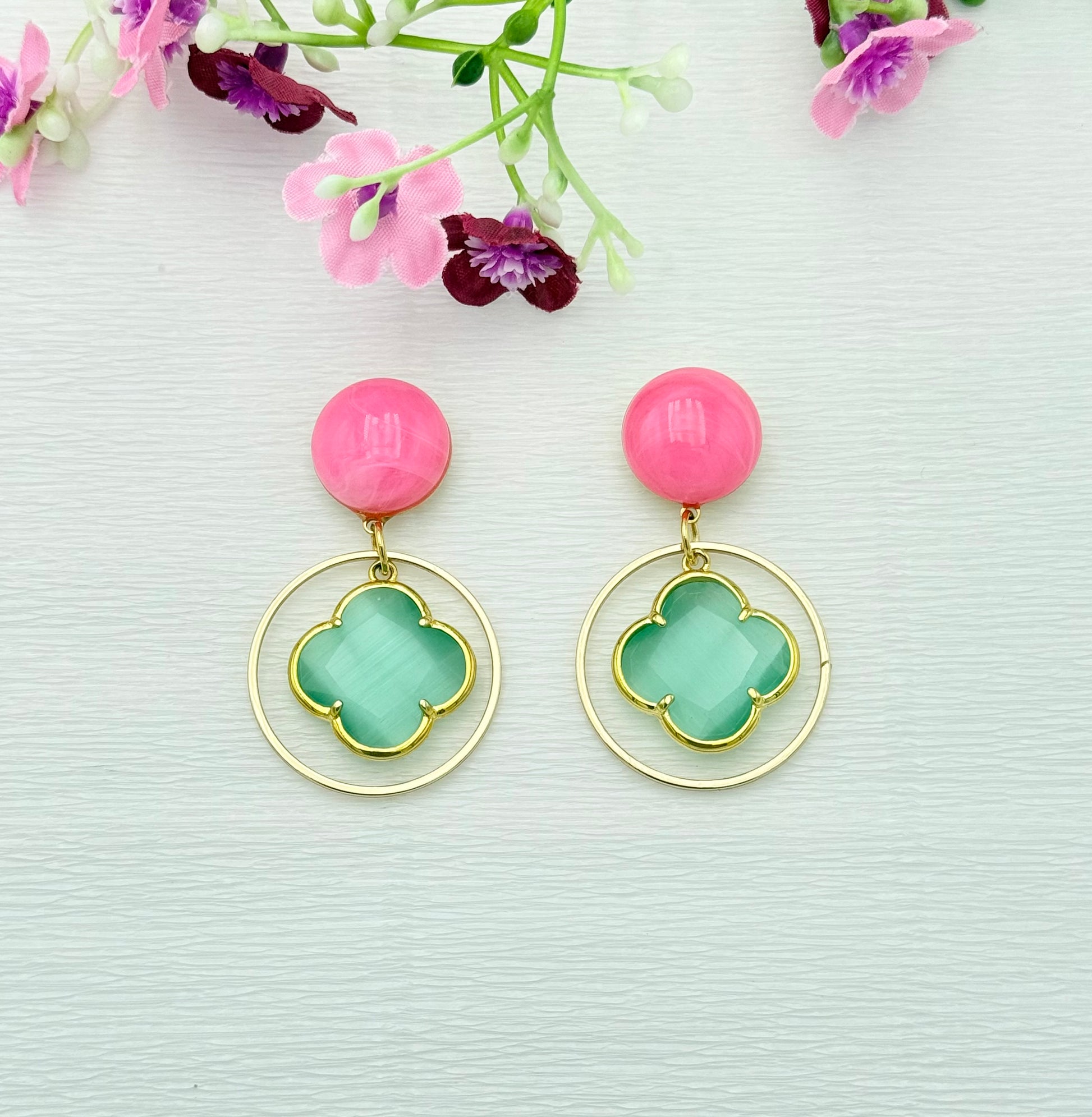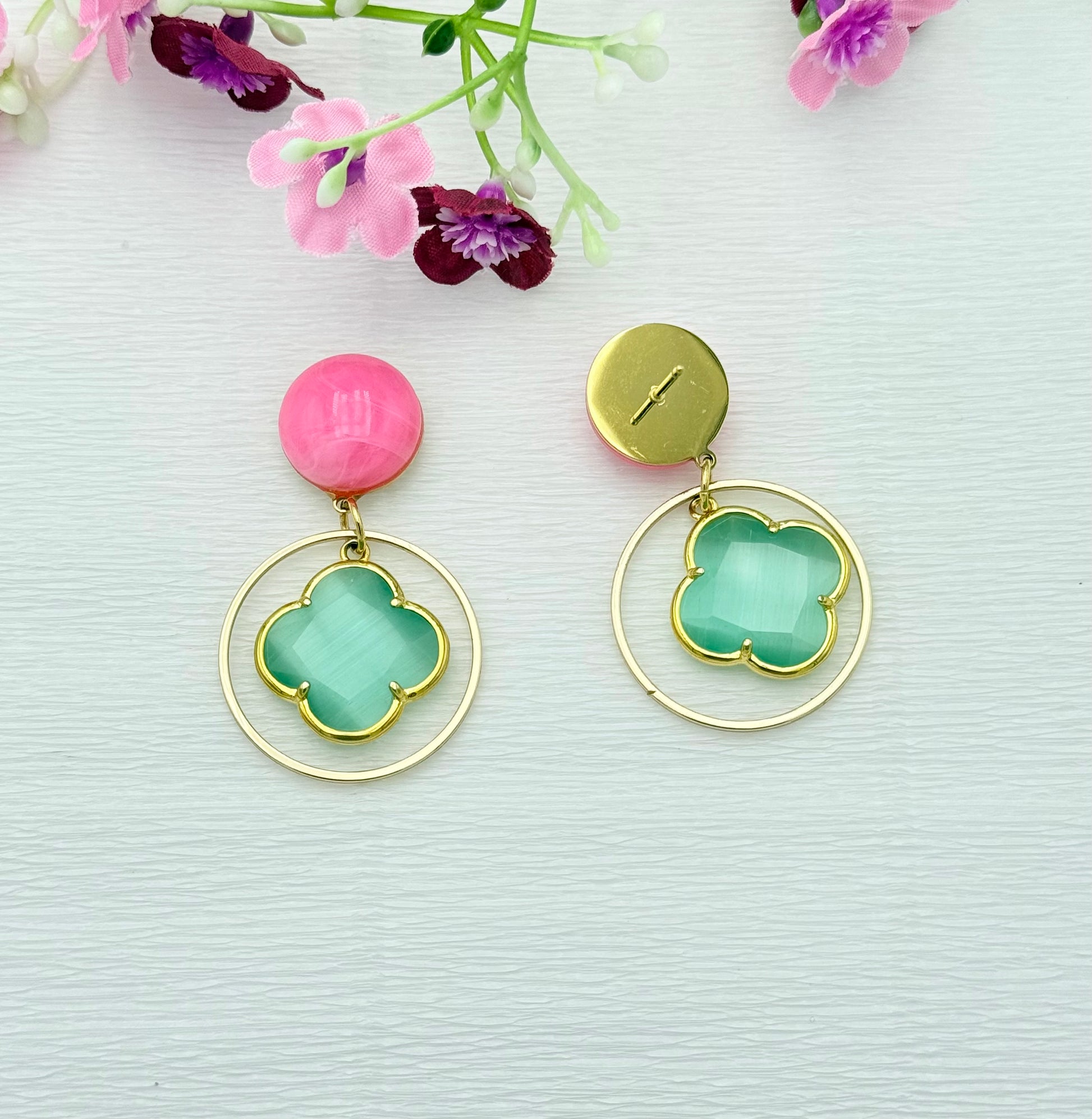 Diese zarten Ohrringe sind unsere neue Lieblinge! Sie verleihen deinem Outfit Eleganz und Leichtigkeit und bringen Farbe und gute Laune in dein Outfit. Der Kleeblatt-Anhänger aus geschliffenem Glaskristall hängt locker in einem goldfarbenem Ring - das verleiht den schönen Ohrringen seine besondere Leichtigkeit. Die vergoldeten Stecker der bunten Ohrringe sind frei von Cadmium und Nickel und sitzen sicher in der Mitte des Ohrläppchens.