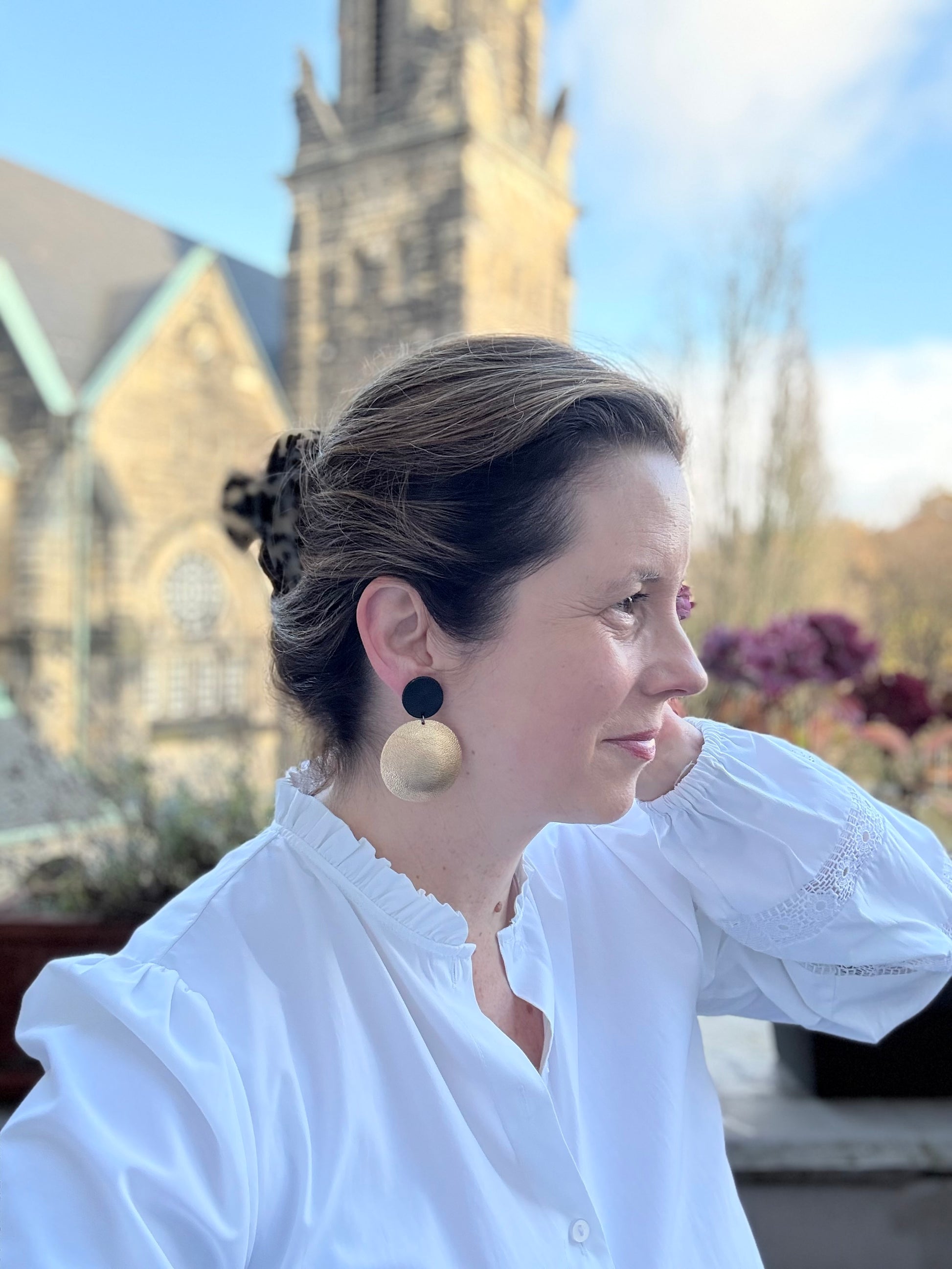 Die Ohrringe sind ganz leicht und können wunderbar den ganzen Tag getragen werden, durch den mittig platzierten Stecker (925er Sterling Silber) sitzen sie auch perfekt am Ohr.