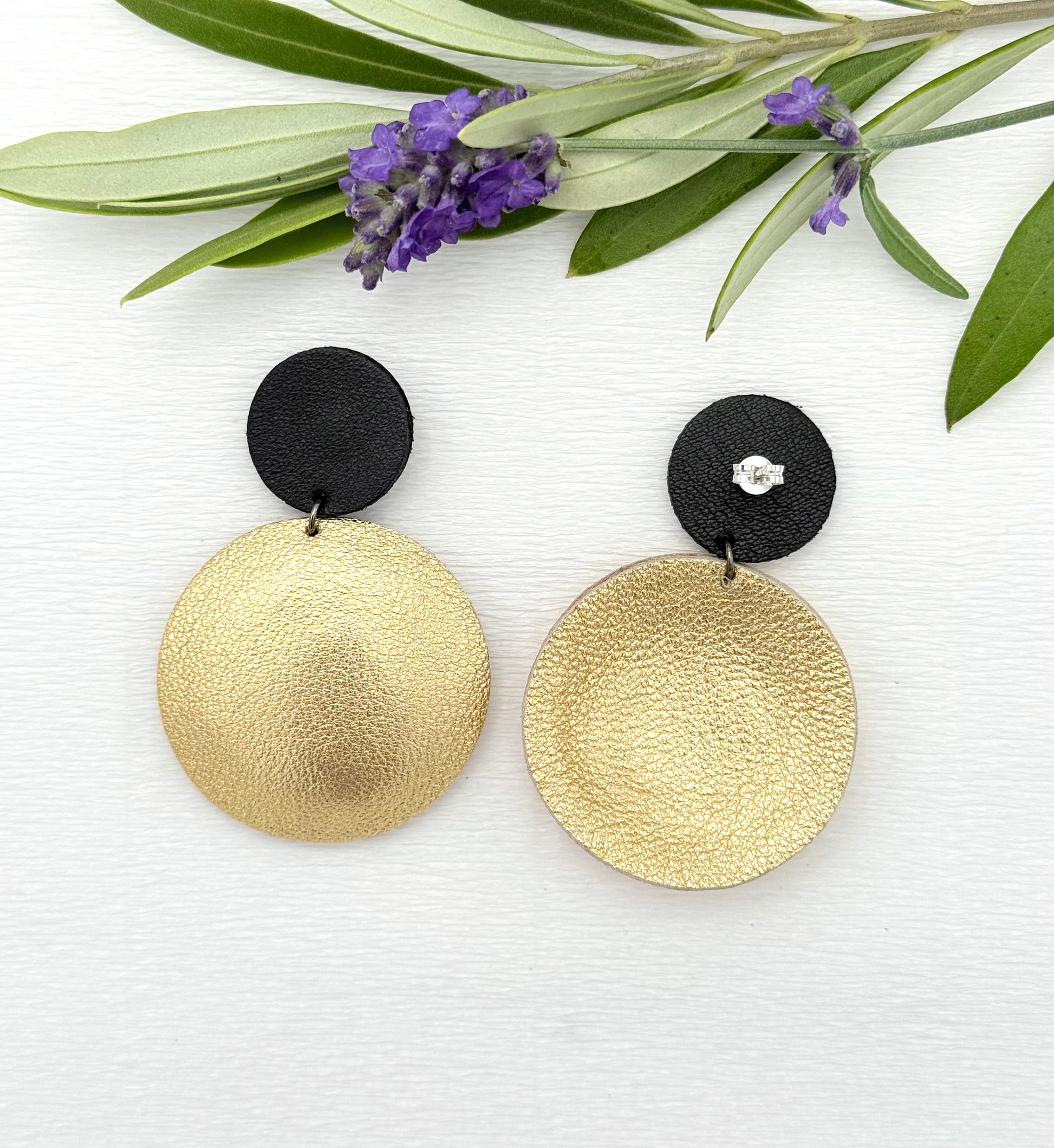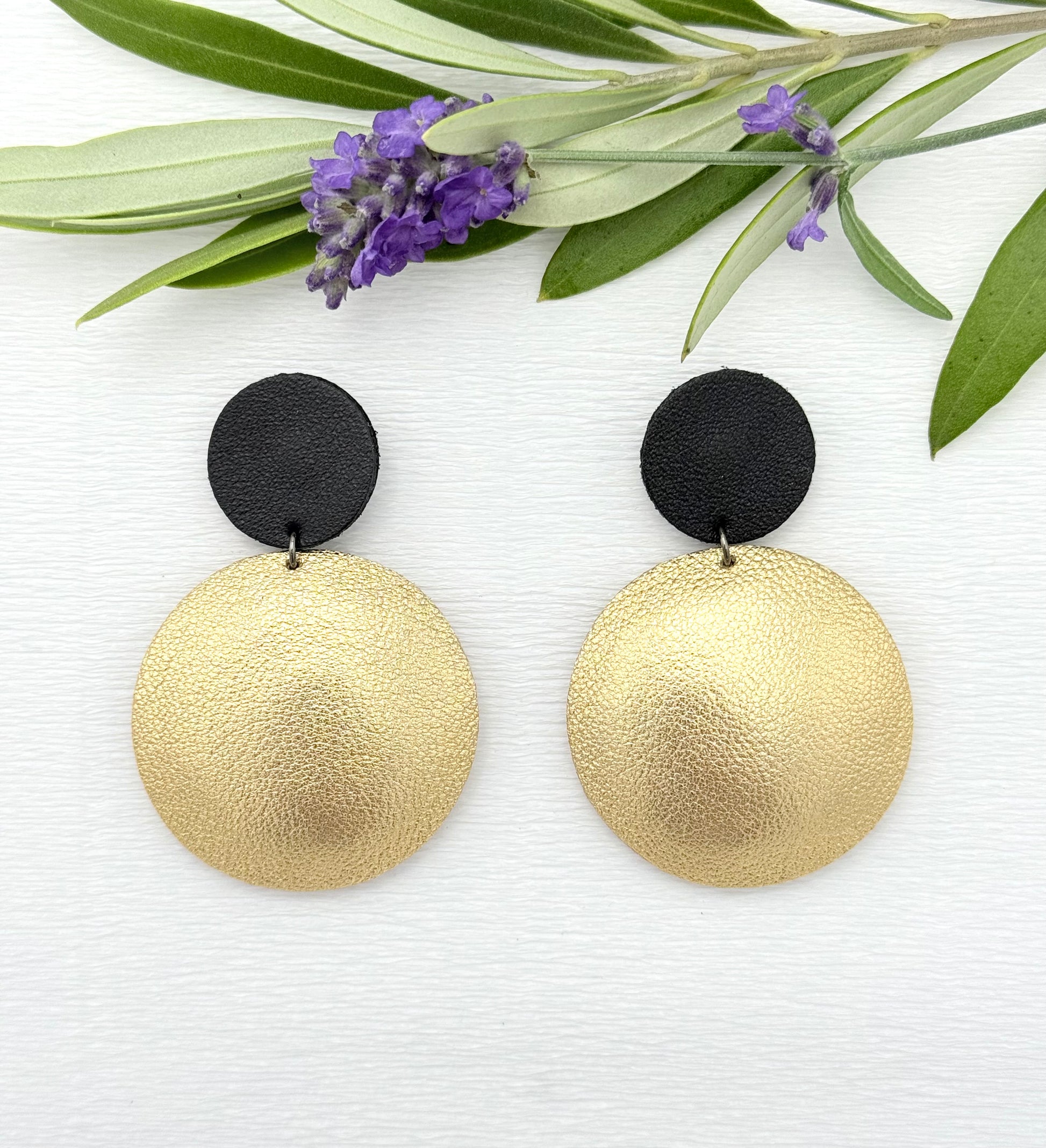 Wunderschöne leichte Lederohrringe in edlem Gold und Schwarz