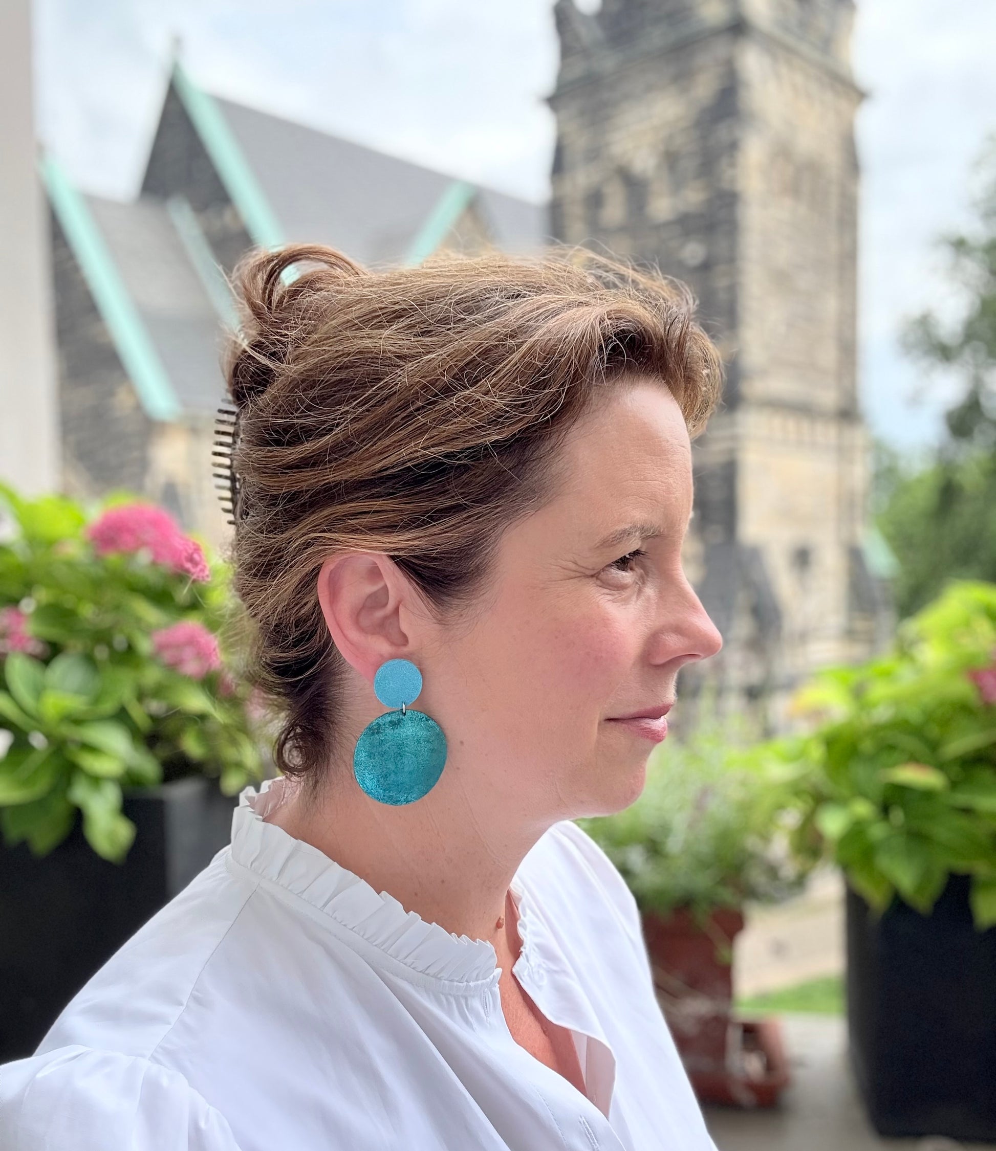 Die Ohrringe sind ganz leicht und können wunderbar den ganzen Tag getragen werden, durch den mittig platzierten Stecker (925er Sterling Silber) sitzen sie auch perfekt am Ohr.