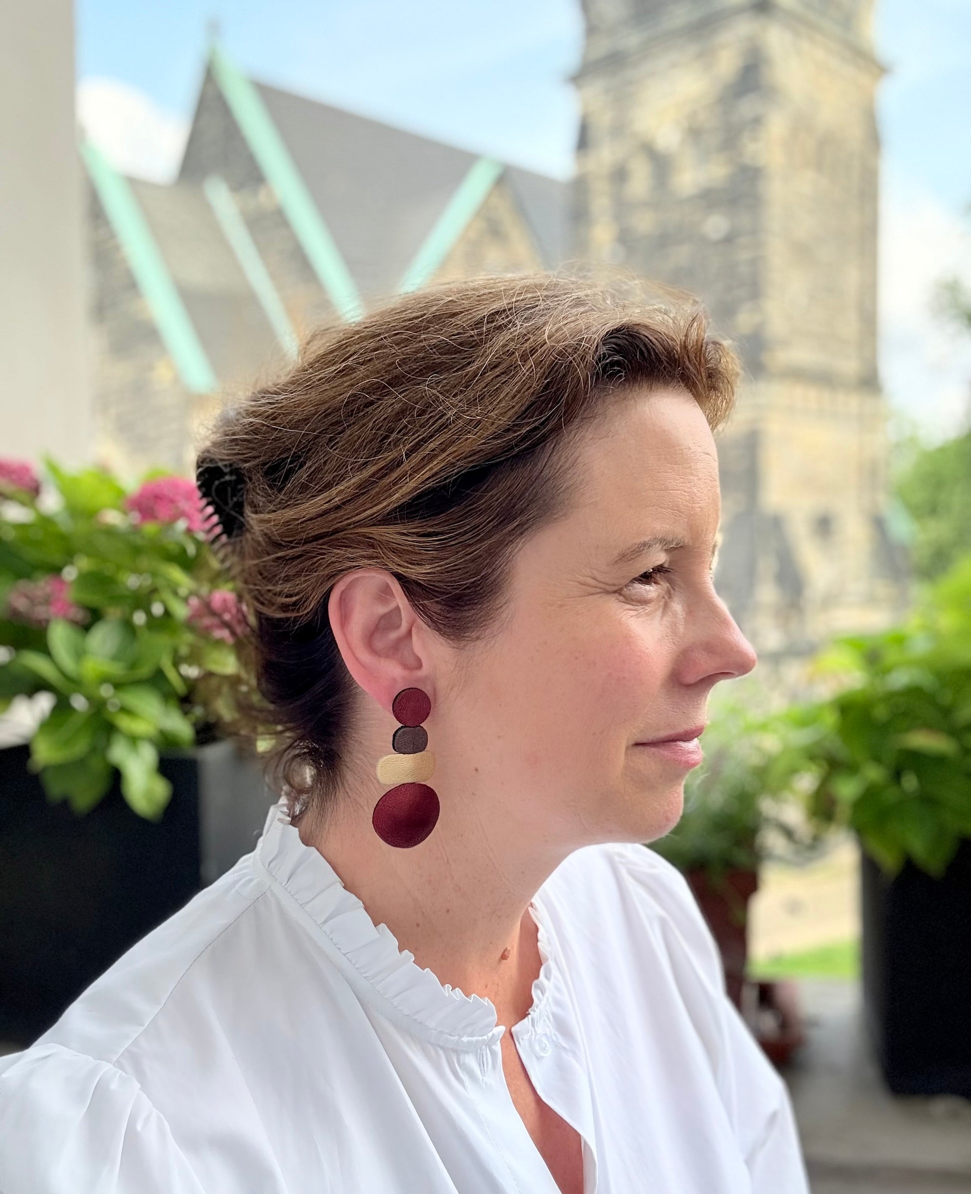 Wunderschöne Statementohrringe in edlen Rot-Gold-Tönen aus feinstem Leder