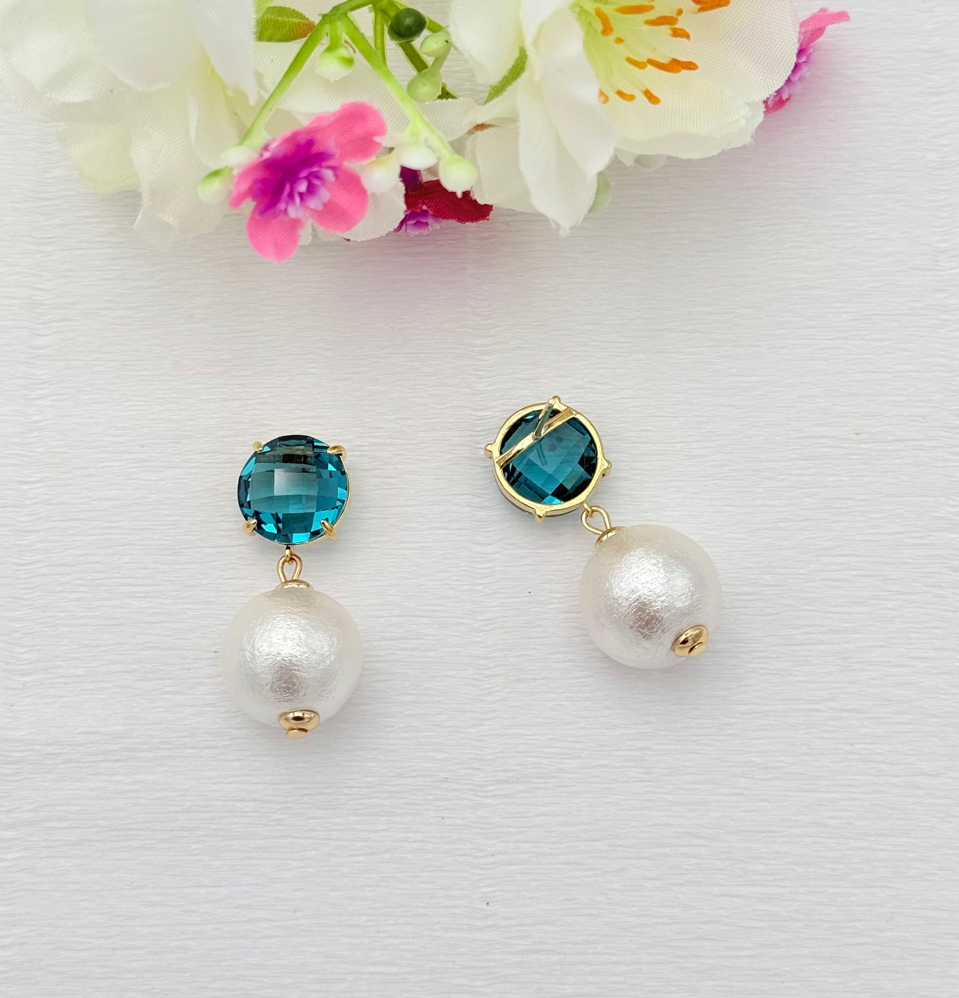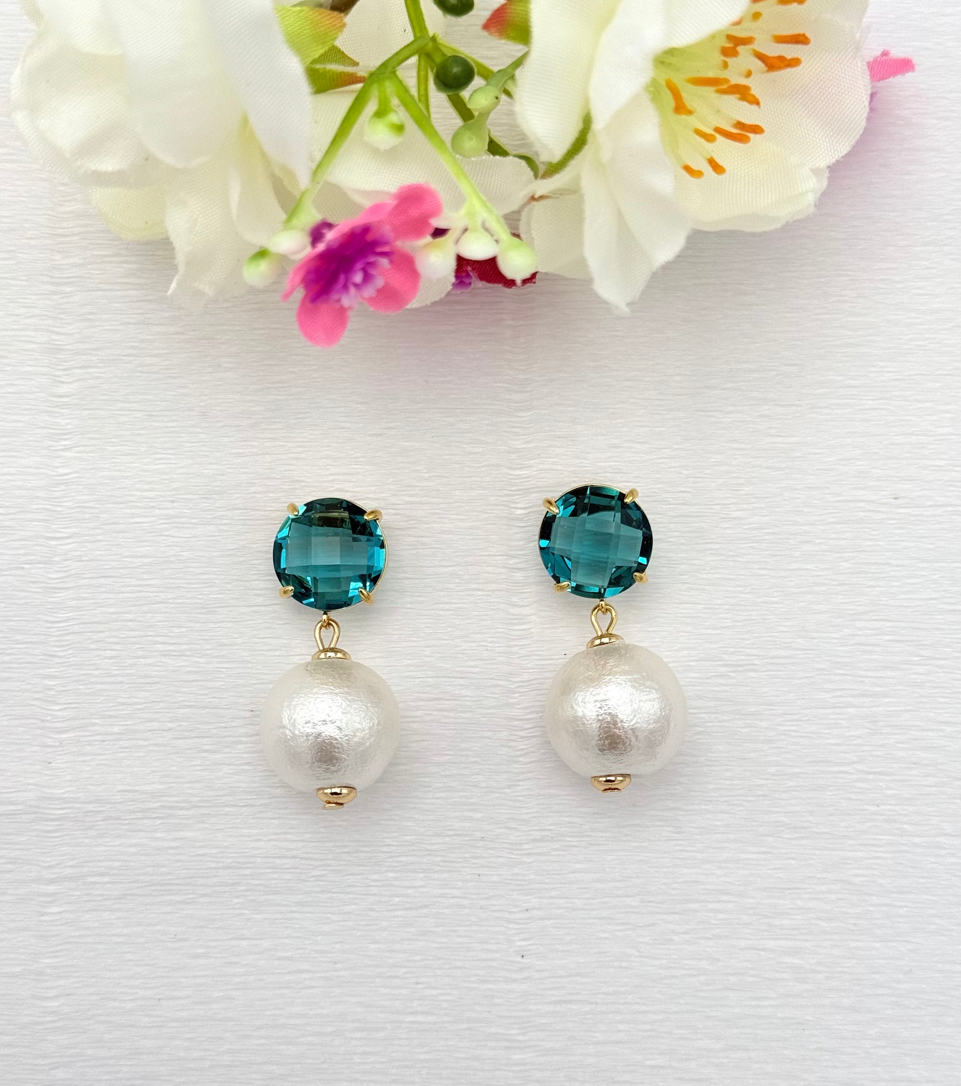 Petrolblauer Ohrringstecker mit Baumwollperle