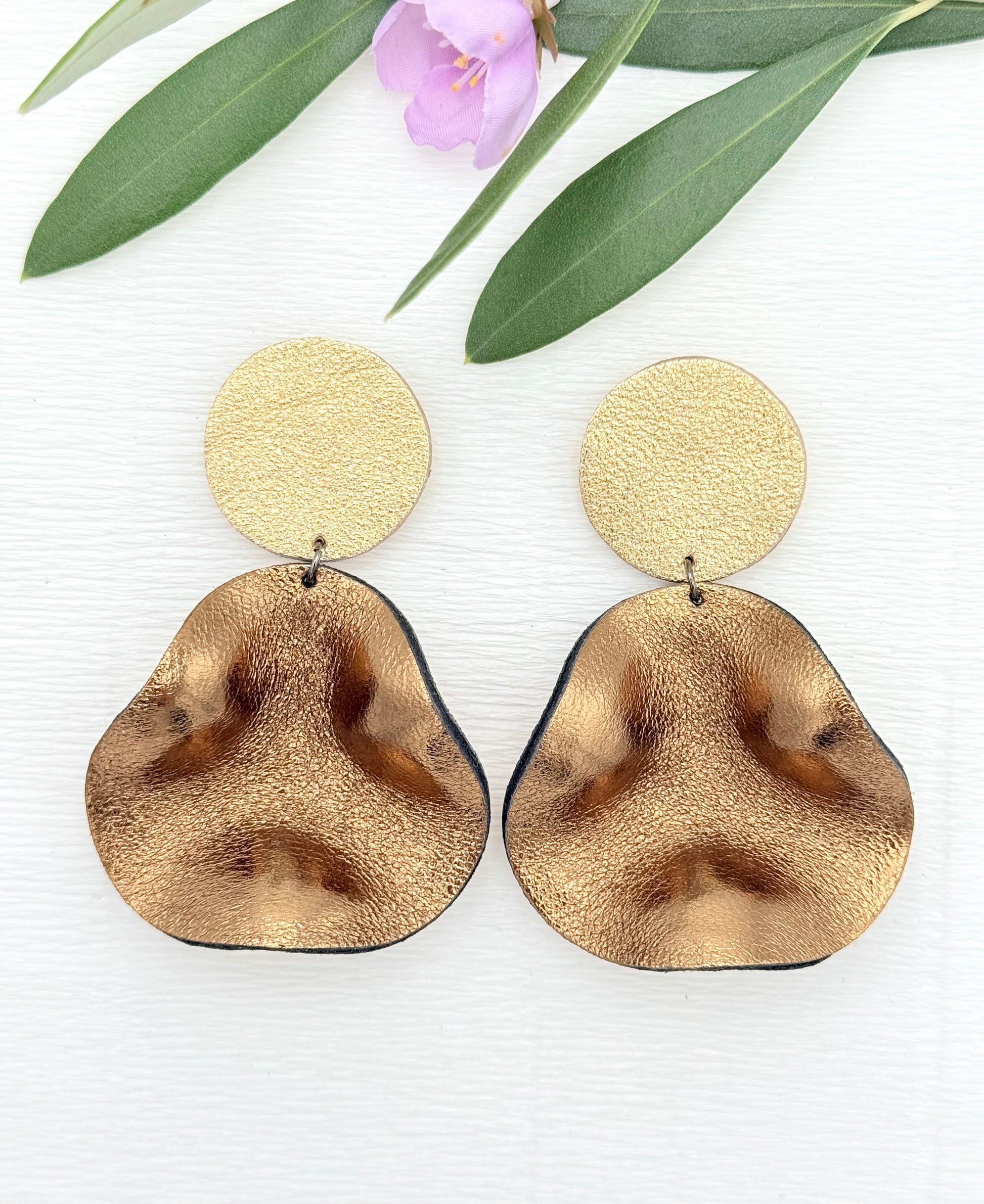 In liebevoller Handarbeit werden die hochwertigen Ohrringe in Griechenland aus feinstem Leder gefertigt. Die golden glänzende Oberfläche des weichen Leders schimmert dezent und sieht elegant und exquisit aus. Mit diesen außergewöhnlichen Ohrringen setzt du echte Wow-Akzente bei deinem Outfit. Unsere absoluten Lieblinge 🌟