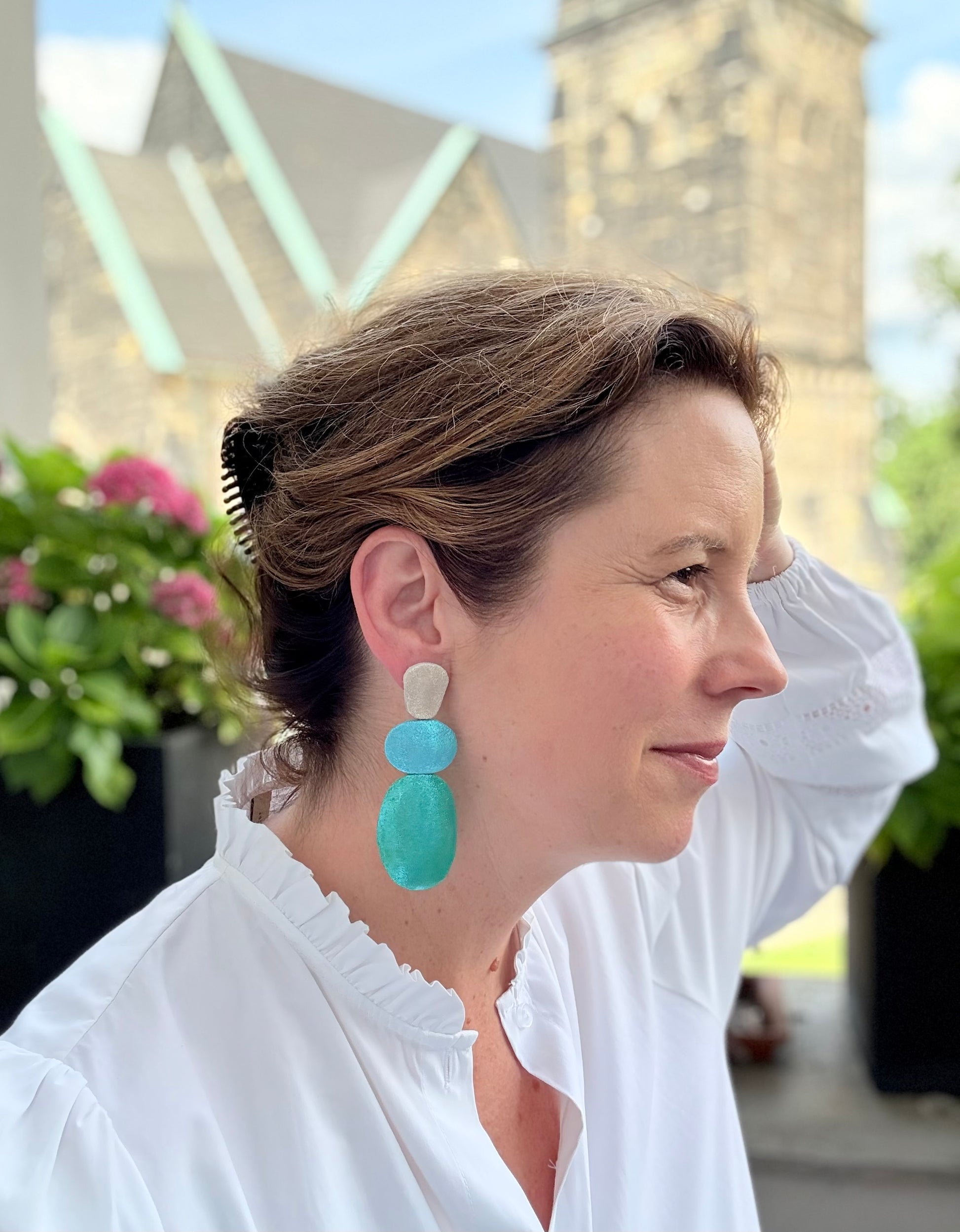 Schillernde Statementohrringe aus feinstem Leder in grün und türkis